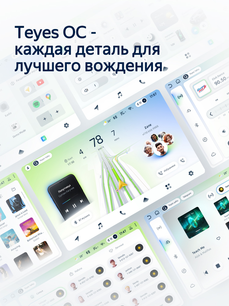 Устройство оснащено IPS-дисплеем с HD-разрешением, обеспечивающим отличную видимость под любым углом. Фирменная оболочка Teyes OS на базе Android 13 предлагает глубокую кастомизацию, включая поддержку «живых» обоев и оптимизированное меню управления. Полная интеграция с мобильными устройствами через беспроводные протоколы делает использование смартфона в машине максимально безопасным.